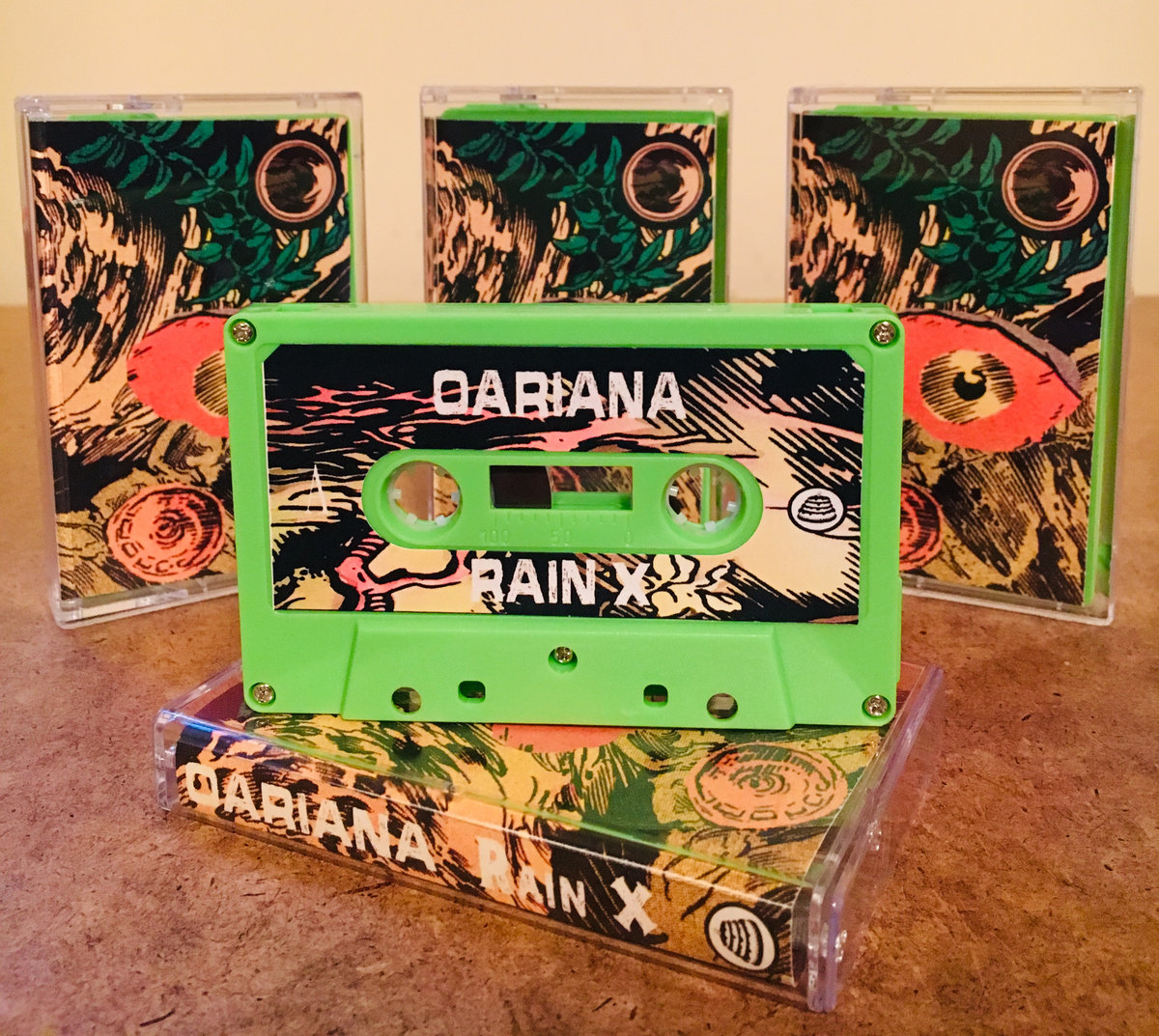 Home-dubbed, limited-edition cassette with laser-printed artwork.